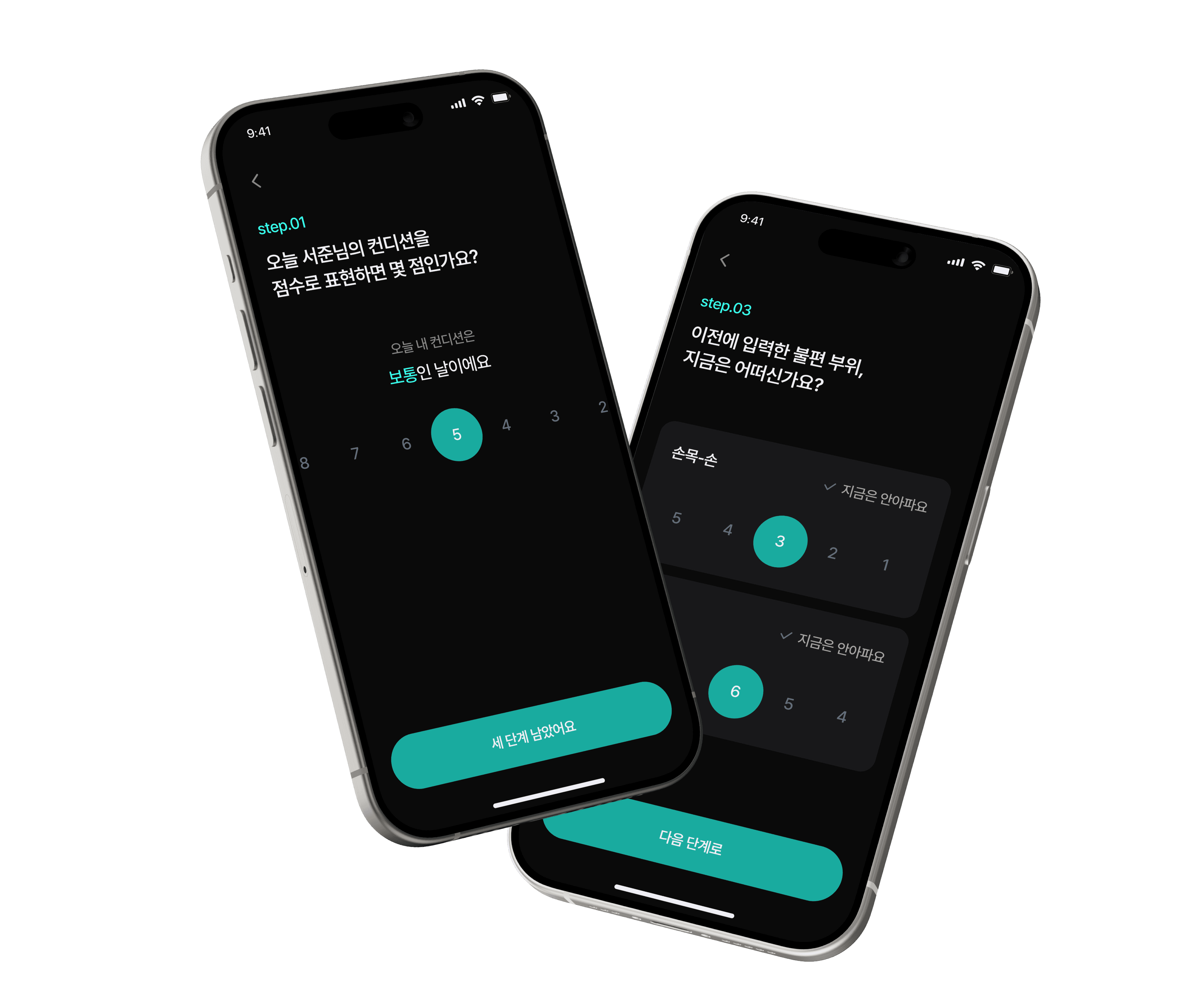 신경쓰지 않아도 핏리포트엑스가 체크인 체크아웃 알람을 미리 대신 보내, 회원의 컨디션, 수면, 음주, 통증 여부를 미리 확인할 수 있습니다